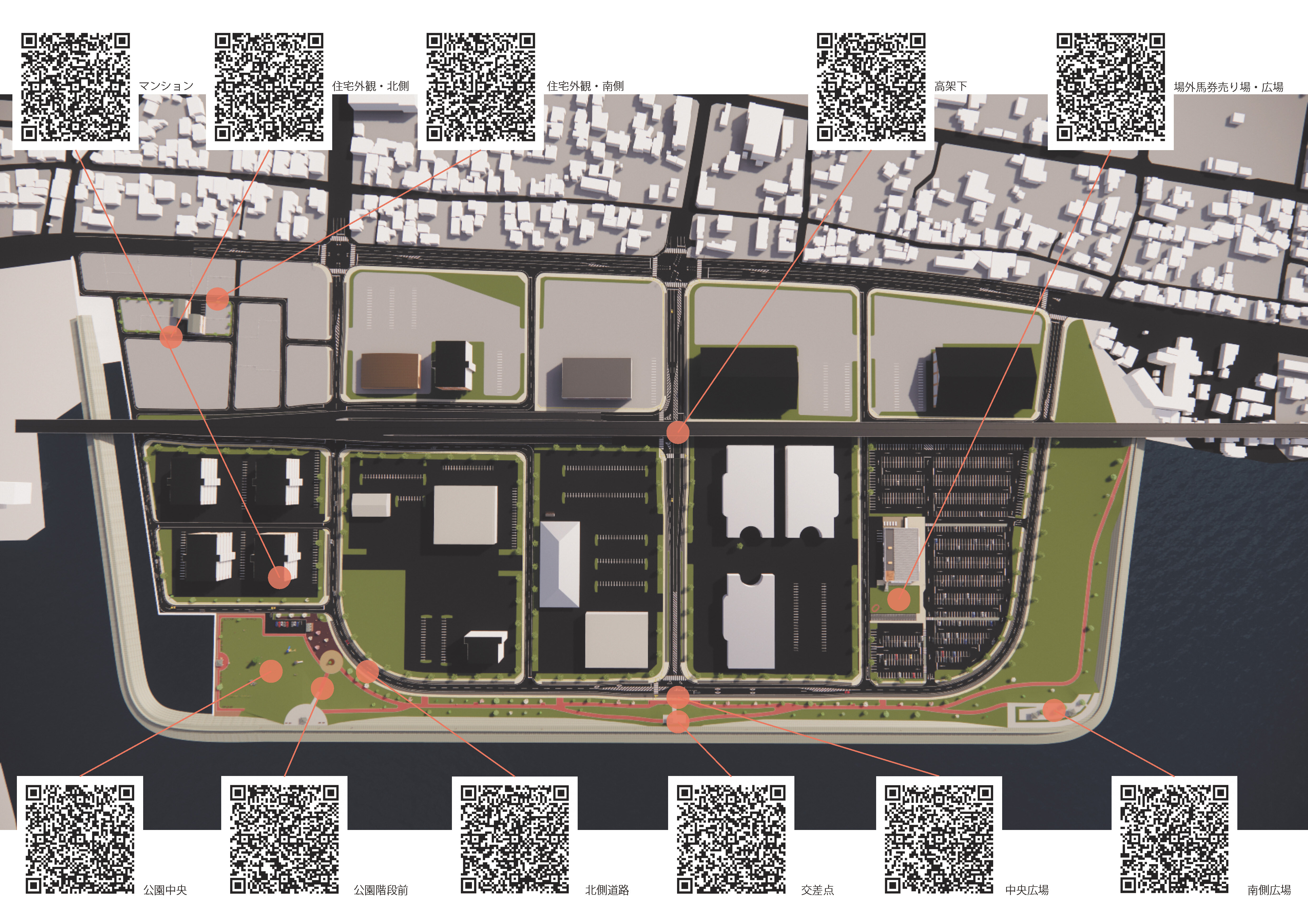 本地区のまちづくりの方針を定めた「南新地地区ウェルネス拠点基本構想(サイト内リンク)」において、本地区の特徴である夕日の眺望等の景観を最大限に活かすために、基盤整備完了後の街並みを視覚的に仮想するツール(VR)を作成しました。これを活用し、洗練された街並みの空間デザインを目指します。